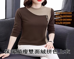 NT$1299[秋冬新款] 雙面絨拼色上衣,上身保暖不漏風,洋氣顯瘦顯氣質,不挑年齡不挑人,多色可選詳情 - 山茶花燙鑽長袖NT$950