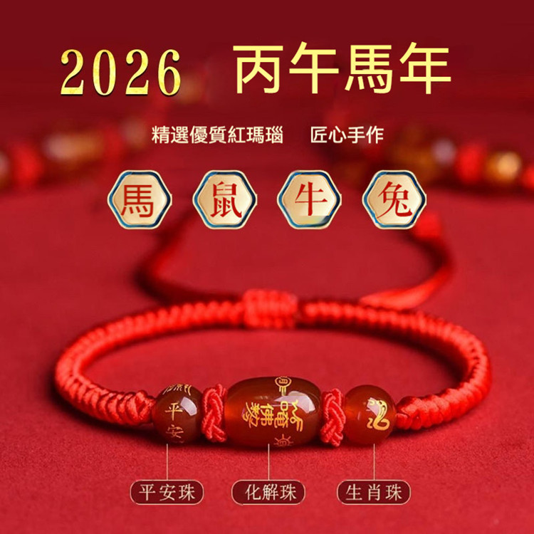 2026年十二生肖紅繩手鏈 精工雕刻您的生肖 搭配吉祥紅繩 匠心手工編織 寓意美好 自戴送禮兩相宜