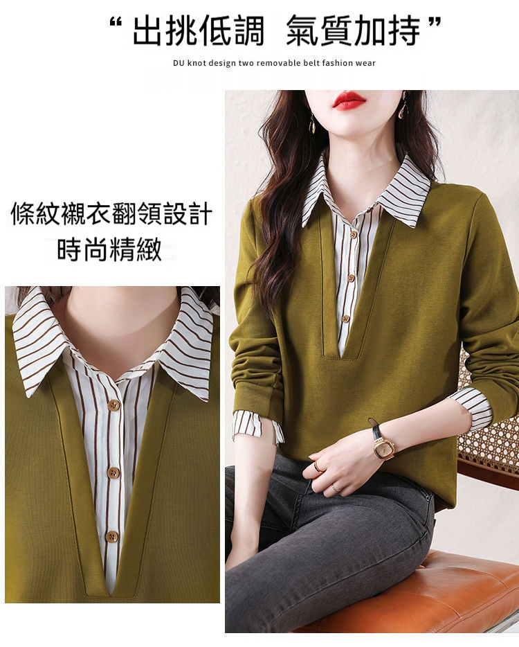 時尚假兩件打底襯衫,寬鬆遮肚顯瘦修飾身型,上身洋氣又顯白,休閒百搭顯優雅氣質