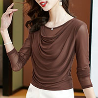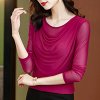 [1] 堆堆領網紗長袖t恤 新款高級感內搭小衫時尚蕾絲上衣,1入組 NT$1198